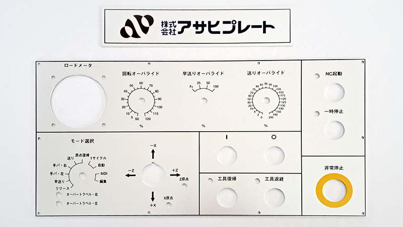 アルマイト印刷 金属銘板のなかでは、一番低コストで製作することが可能です。 印刷精度や擦過性に優れており機械の制御パネル、社名板管理銘板等に広く使用されています。 作成例 社名板 機械銘板・操作銘板・表示銘板 管理銘板 機械制御パネル など